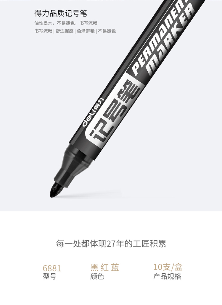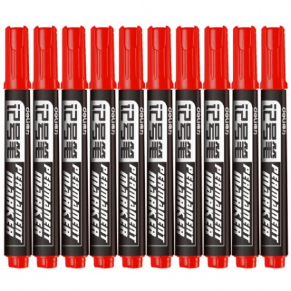 • 商品名稱:得力(deli)紅色粗頭物流油性記號(hào)筆大頭筆 10支/盒6881