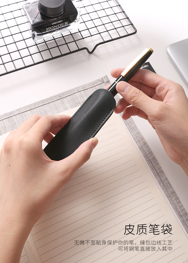 • 得力(deli)卓然F尖鋼筆套裝 鋼筆+墨水+筆袋+6支墨囊 33508