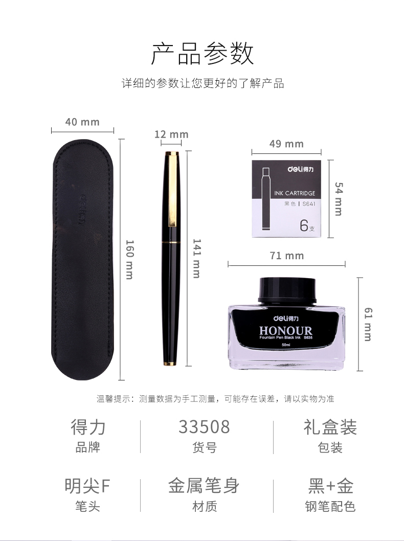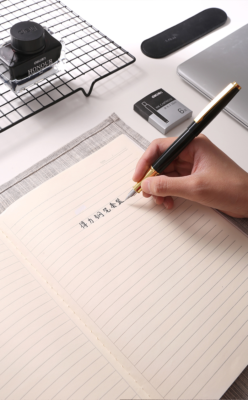 • 商品名稱:得力(deli)卓然F尖鋼筆套裝 鋼筆+墨水+筆袋+6支墨囊 33508