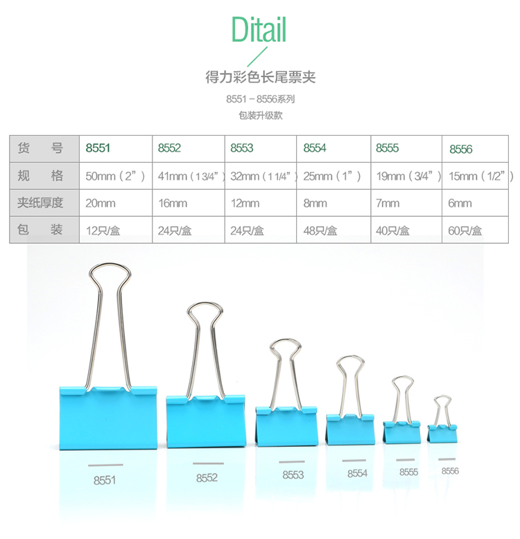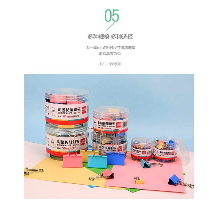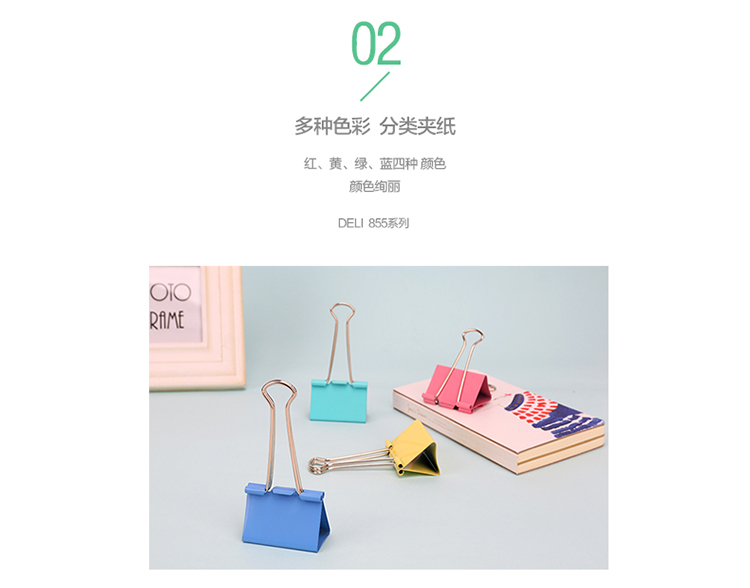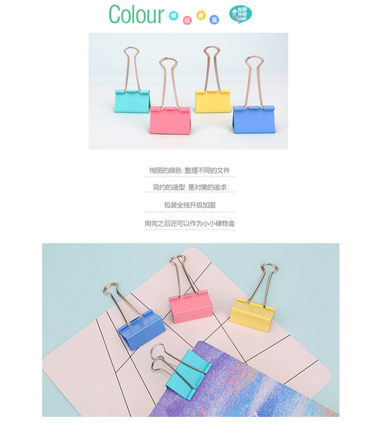 • 商品名稱:得力(deli)24只32mm彩色長尾票夾 金屬票據(jù)夾燕尾夾鐵夾子 中號8553