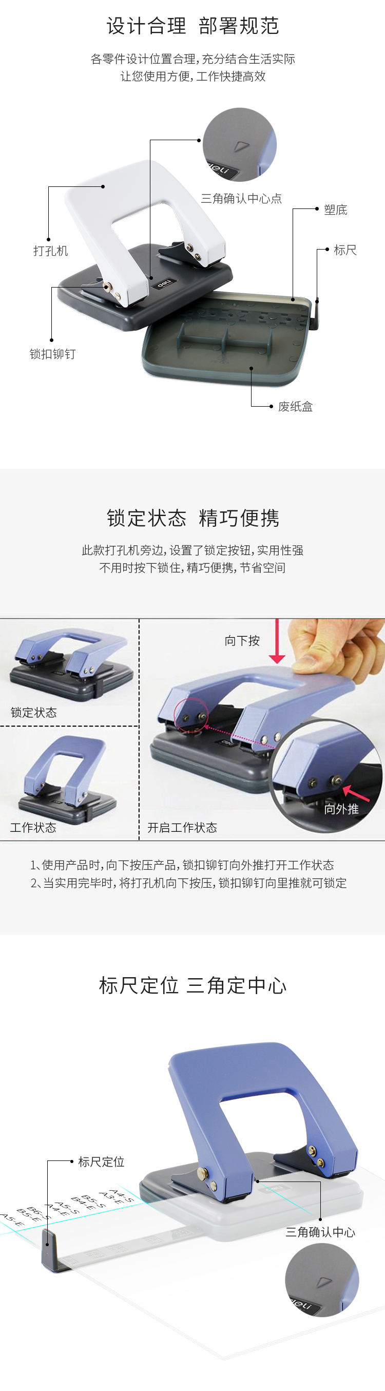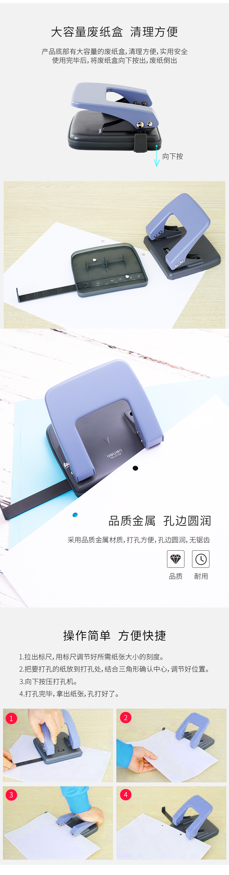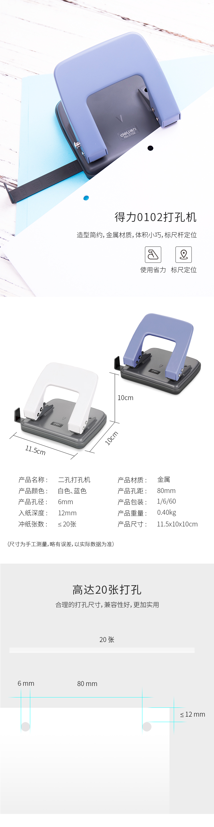 • 商品名稱:得力(deli)φ6mm可打20頁兩孔打孔器打孔機(帶標尺) 中號混色0102