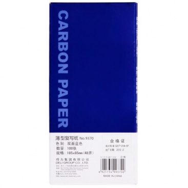 • 得力(deli)48K經(jīng)濟(jì)耐用薄型復(fù)寫(xiě)紙(18.5*8.5cm) 100張/盒 藍(lán) 9370