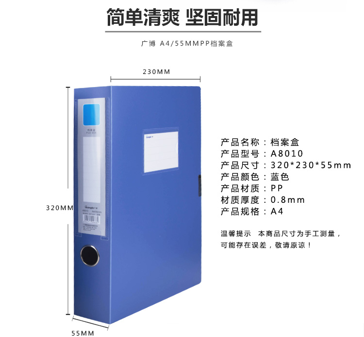 • 商品名稱:廣博(GuangBo)12只裝55mmA4文件盒/檔案盒/資料收納盒 銳文A8010