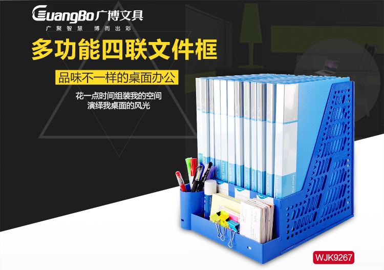 • 商品名稱:廣博(GuangBo)加厚四聯(lián)文件框/資料架帶筆筒/辦公用品 藍(lán)WJK9267-L