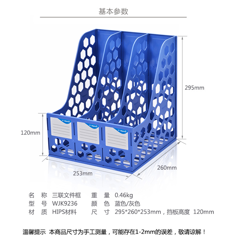 • 商品名稱:廣博(GuangBo)三聯(lián)文件框/資料架/辦公用品加固型 藍(lán)灰顏色隨機(jī) 單個(gè)裝WJK9236