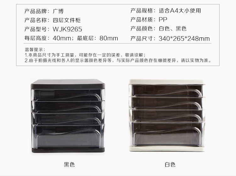 • 商品名稱:廣博(GuangBo)四層桌面文件柜/檔案柜/資料辦公收納柜 灰黑顏色隨機 單個裝WJK9265