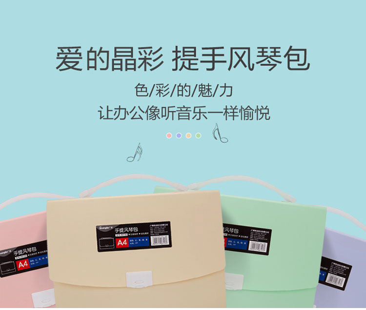 • 廣博(GuangBo)A4手提文件包/風琴包/文件夾/資料夾 晶彩顏色隨機 單個裝A9160
