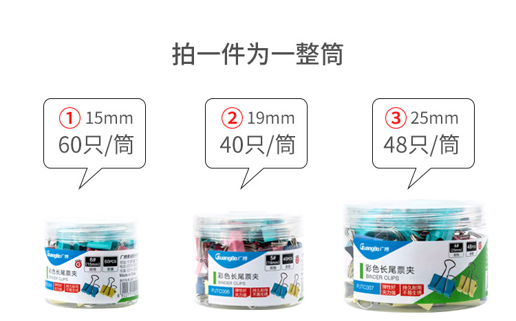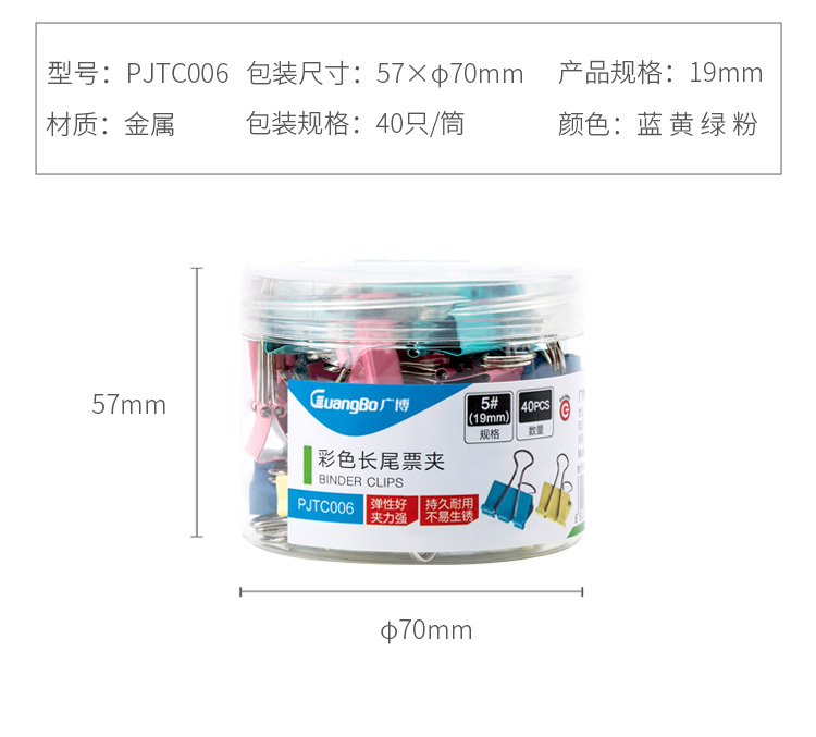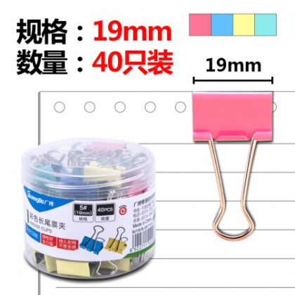 • 商品名稱:廣博(GuangBo)40只裝19mm彩色長尾夾子燕尾夾票夾辦公文具PJTC006