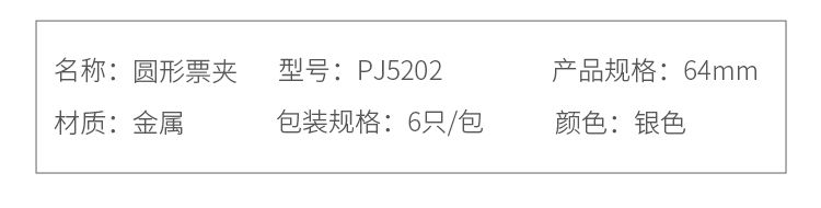 • 商品名稱:廣博(GuangBo)6只裝64mm金屬圓形票夾子票據(jù)夾PJ5202