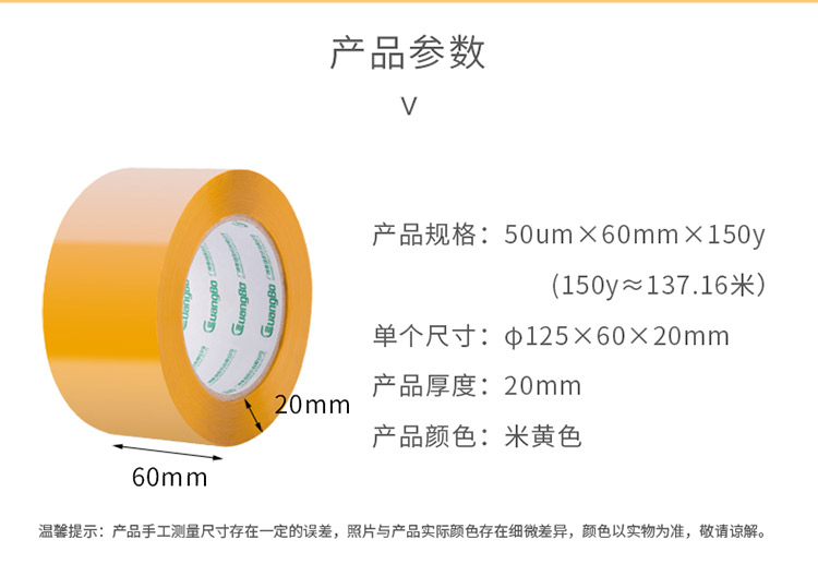 • 商品名稱:廣博(GuangBo)6卷裝60mm*150y米黃色封箱寬膠帶膠布辦公文具FX-77