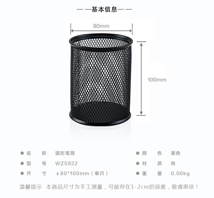 • 商品名稱:廣博(GuangBo)圓形辦公金屬筆筒WZ/WJ5922