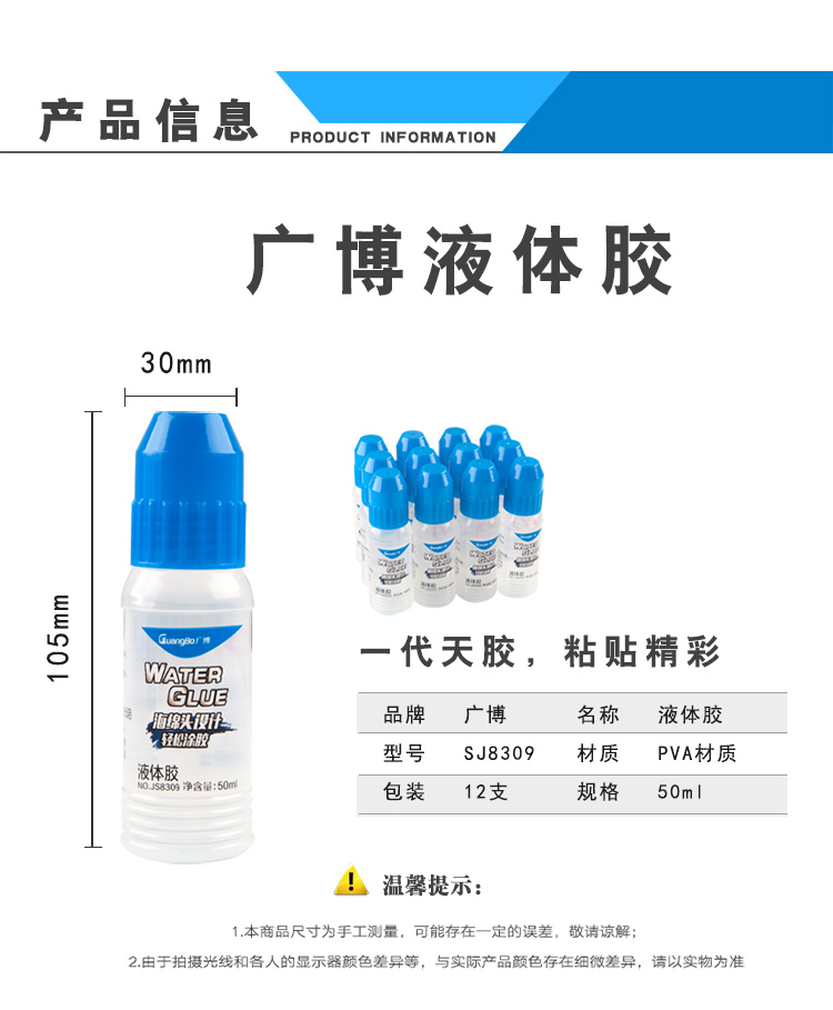 • 商品名稱:廣博(GuangBo)12支裝50ml海綿頭液體膠水升級(jí)裝JS8309