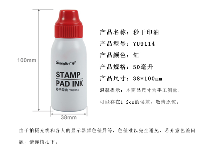 • 商品名稱:廣博(GuangBo)50ml秒干印油/印臺印泥油/辦公用品 升級版紅色YU9114