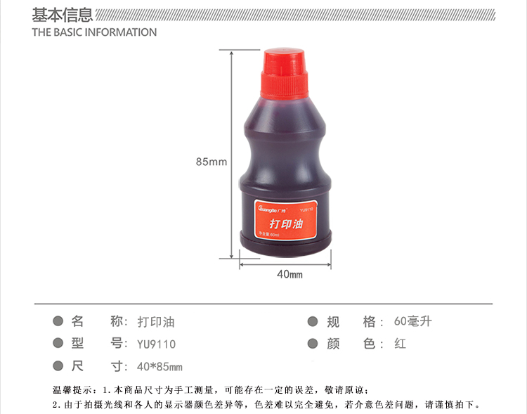 • 商品名稱:廣博(GuangBo)10瓶裝60ml打印油/印泥油/財務辦公用品 紅YU9110