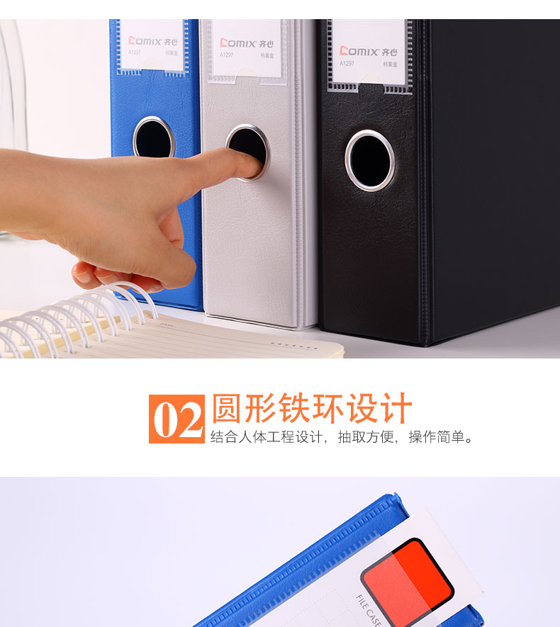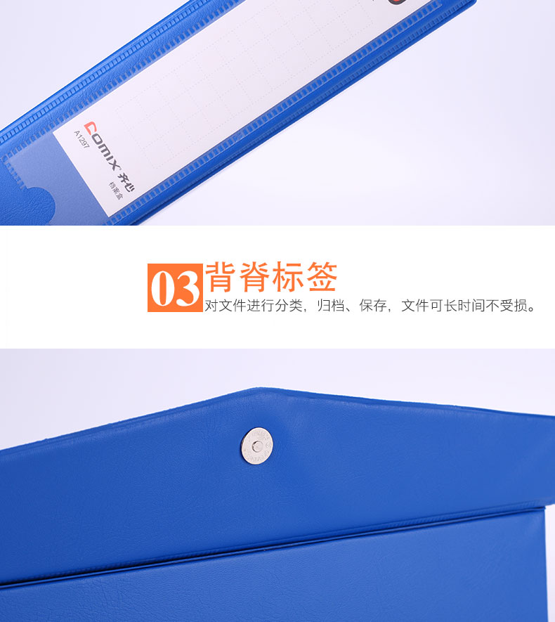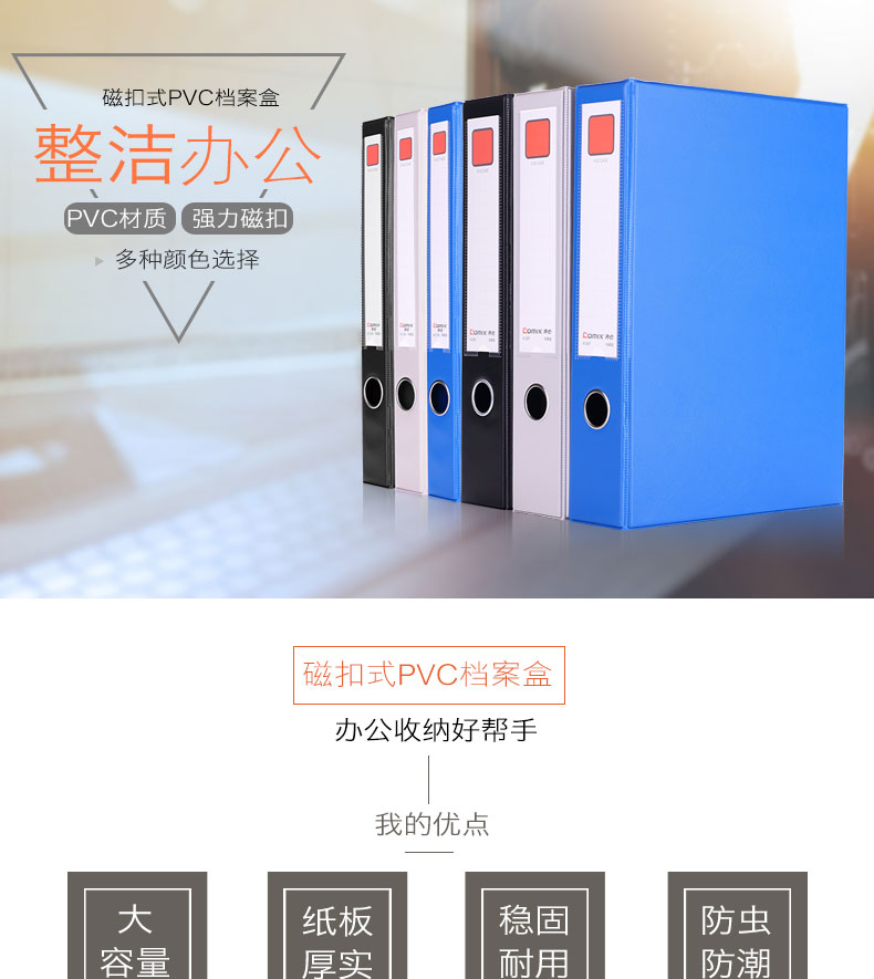 • 齊心(Comix) 55mm耐用磁扣式檔案盒/文件盒/A4資料盒 A1297 藍(lán)色 辦公文具