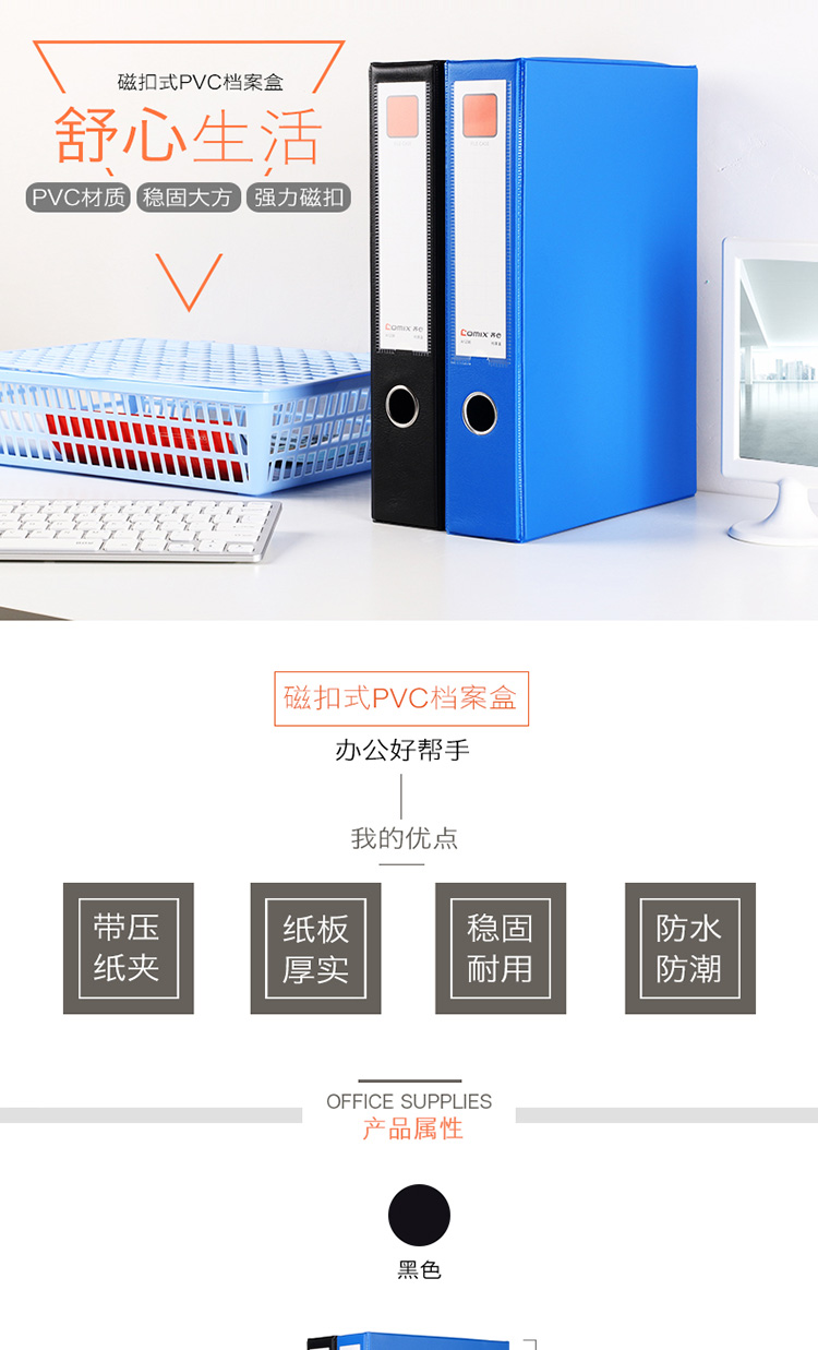 • 商品名稱:齊心(Comix) 檔案盒A4 文件盒55mm 磁扣式資料盒(帶壓紙夾) 黑色 辦公文具 A1236