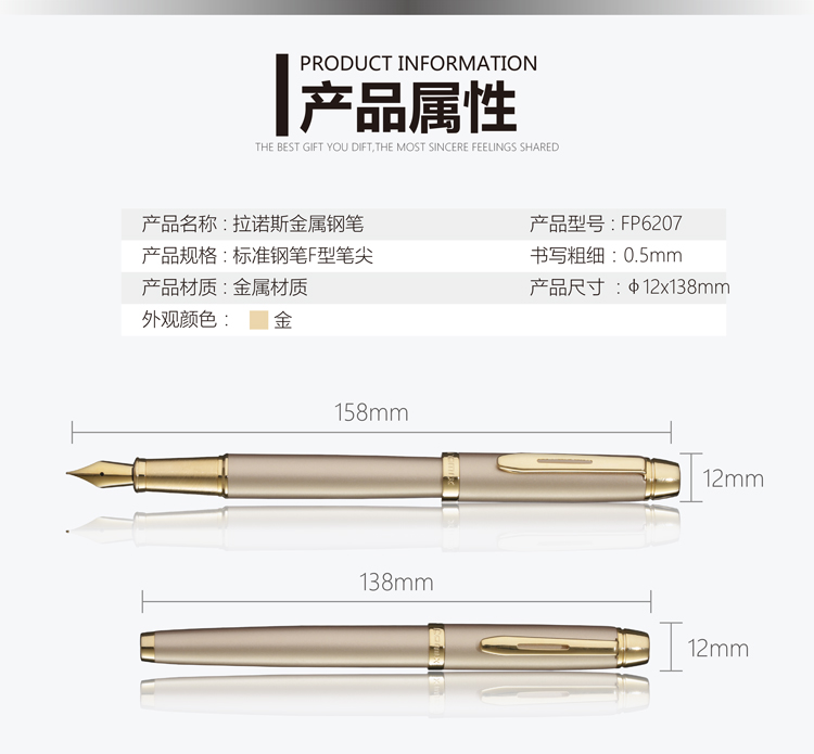 • 商品名稱:齊心(Comix) 拉諾斯金屬鋼筆F尖/墨水筆/簽字筆/水筆 時尚男女商務(wù)辦公禮品筆(1筆+4墨囊) FP6207