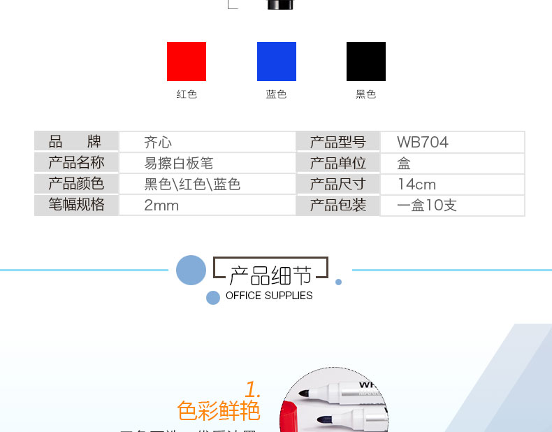 • 商品名稱:齊心(COMIX)WB704 易擦白板筆10支裝 紅色