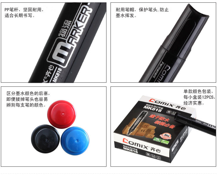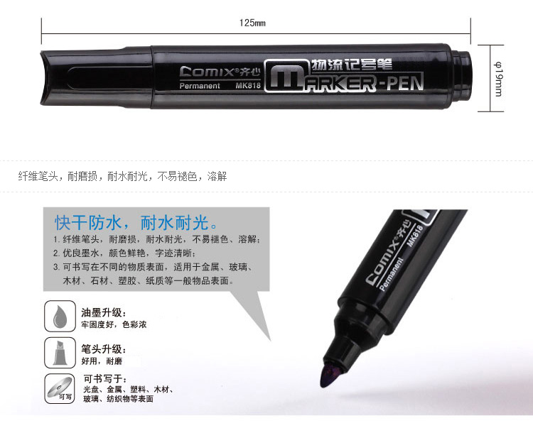 • 商品名稱:齊心(Comix)黑色粗頭物流油性記號(hào)筆大頭筆 12支/盒 辦公文具 MK818