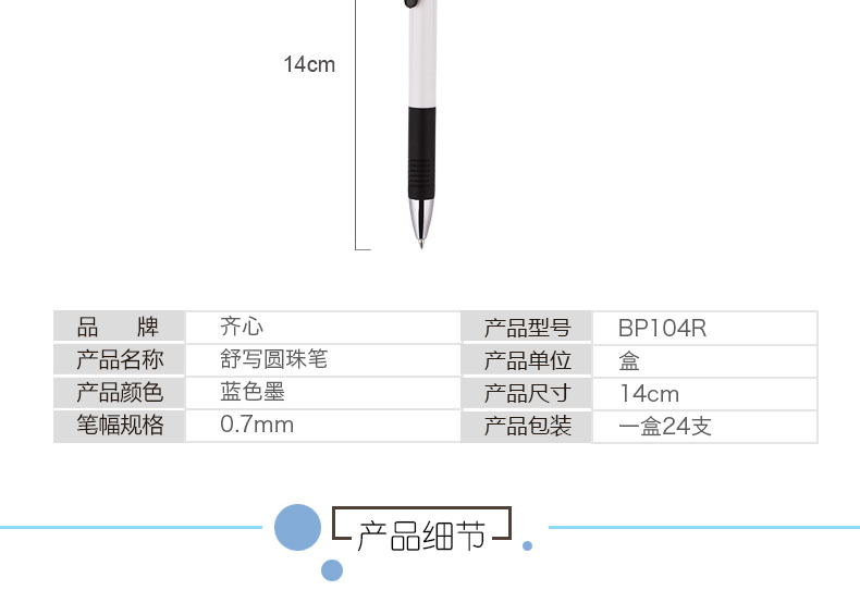 • 商品名稱:齊心(Comix)24支裝舒順圓珠筆0.7mm顏色隨機(jī) 辦公文具 BP104R