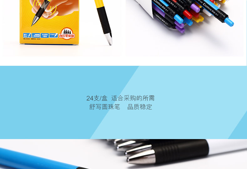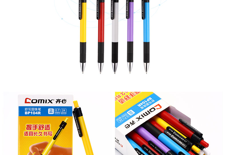 • 齊心(Comix)24支裝舒順圓珠筆0.7mm顏色隨機(jī) 辦公文具 BP104R
