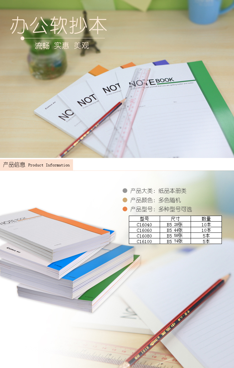 • 商品名稱:齊心(COMIX)C16040 B5 28張文具筆記本/記事本/日記本子 10本裝顏色隨機(jī)