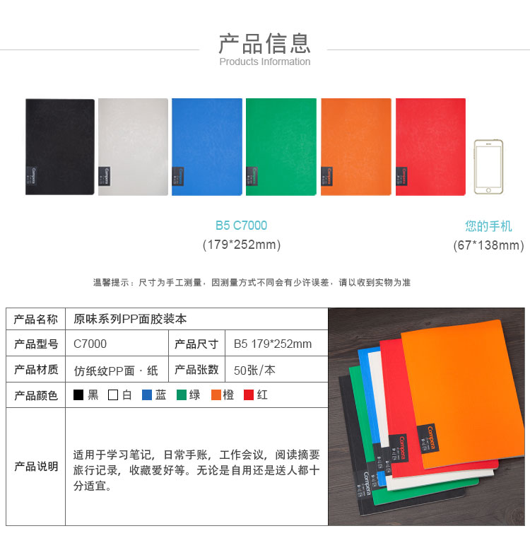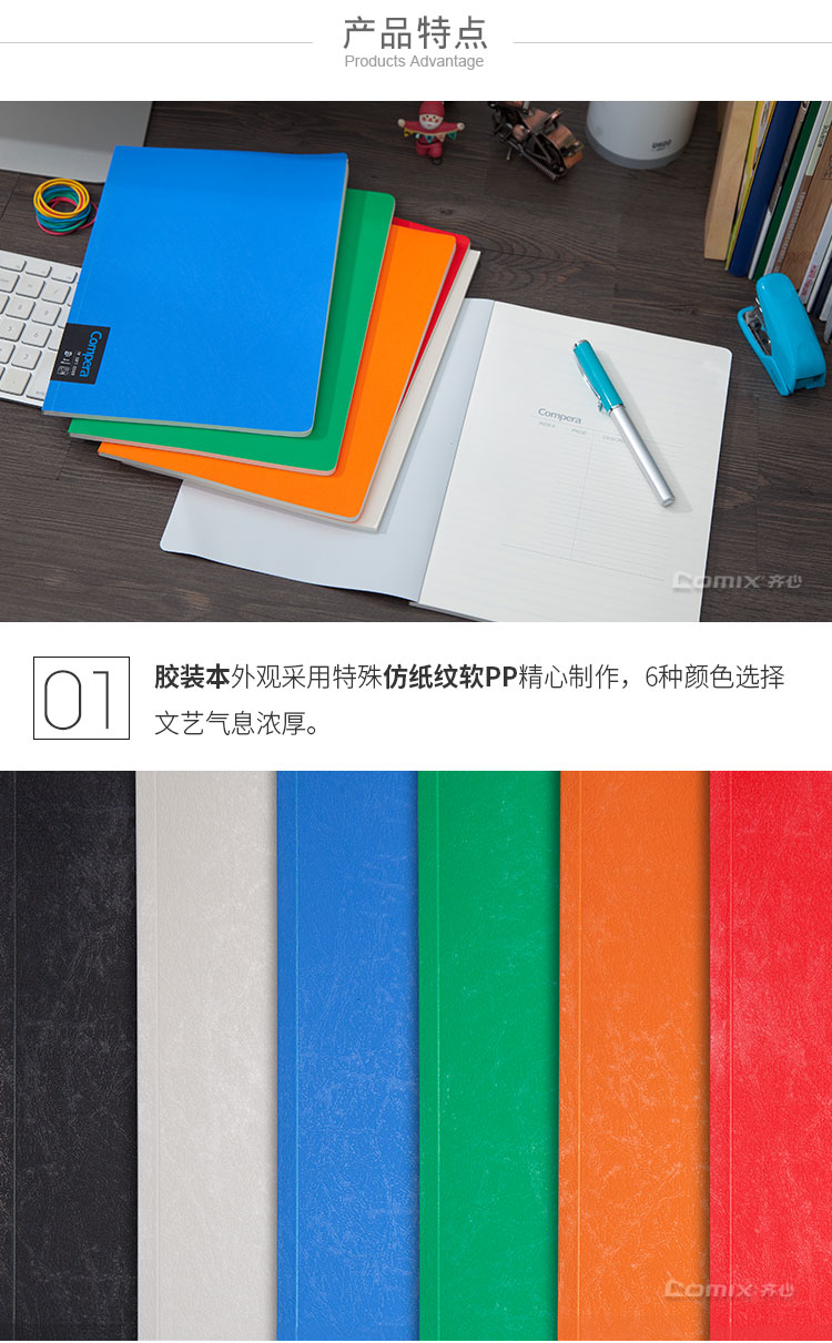 • 商品名稱:齊心(COMIX)B5 50張PP面膠裝本/記事本/軟抄本/筆記本子 Compera原味系列 C7000 顏色隨機(jī)