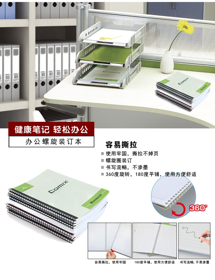 • 商品名稱:齊心(Comix) C4516 螺旋圈裝訂本 B5 50頁(yè) 筆記本子 12本裝 配色