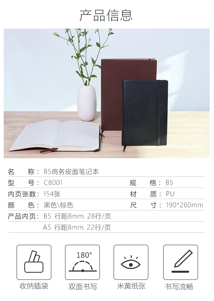 • 商品名稱:齊心(COMIX)B5 154頁商務(wù)皮面筆記本子/記事本/日記本 Compera精英系列 黑色 辦公文具 C8001