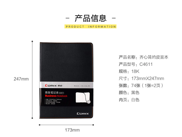 • 商品名稱:齊心(COMIX) C4611 簡約系列皮面本/記事本/日記本 B5 74張