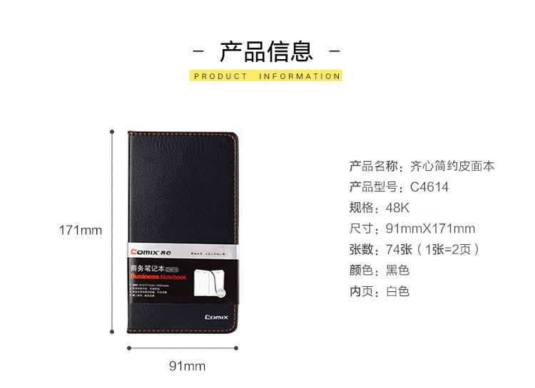 • 商品名稱:齊心(COMIX)A6 74張簡約系列皮面筆記本/記事本/日記本子 黑色 辦公文具 C4614