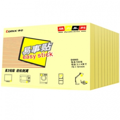 • 齊心(COMIX)D5003 便利貼/便簽紙/便簽本/易事貼(76x101mm) 12本裝 黃