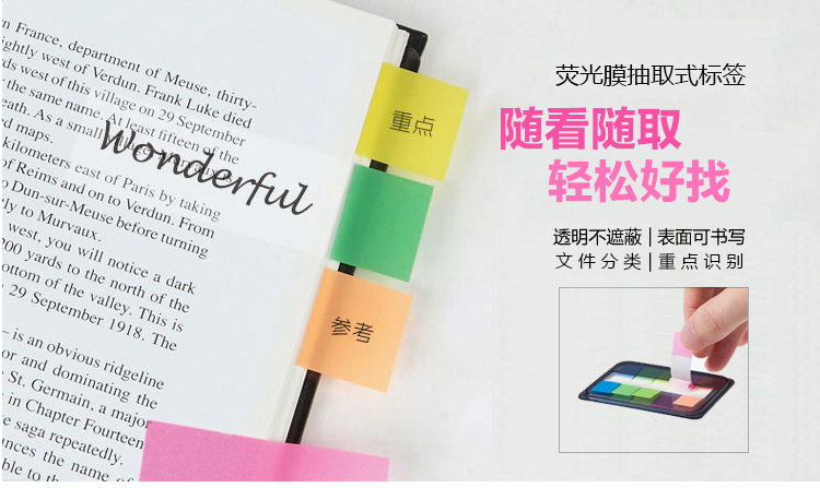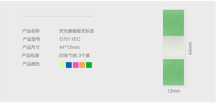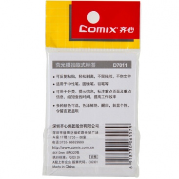 • 商品名稱:齊心(Comix)D7011EC 熒光膜指示標(biāo)簽/便簽條/便利貼/百事貼 3個(gè)裝 (44x12mm)20張*5色