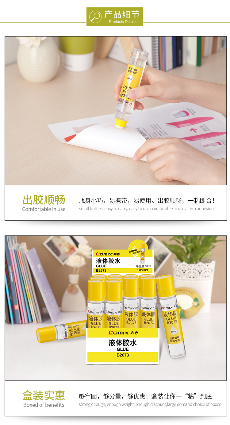 • 商品名稱:齊心(Comix)12支裝50ml實(shí)惠裝高粘性海綿頭液體膠水 辦公文具 B2673