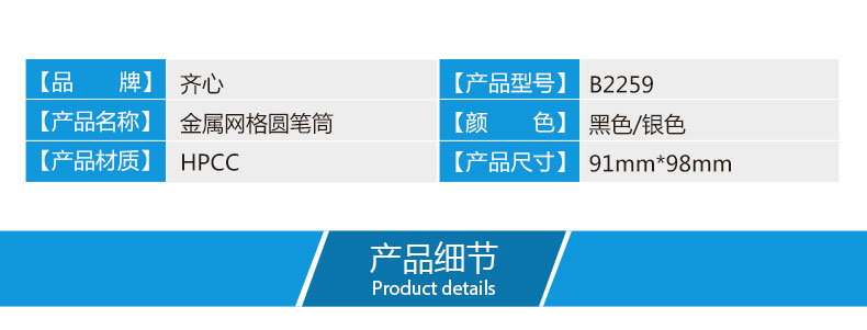 • 商品名稱:齊心(Comix)黑色金屬圓形筆筒 創(chuàng)意收納筆座 辦公文具 B2259