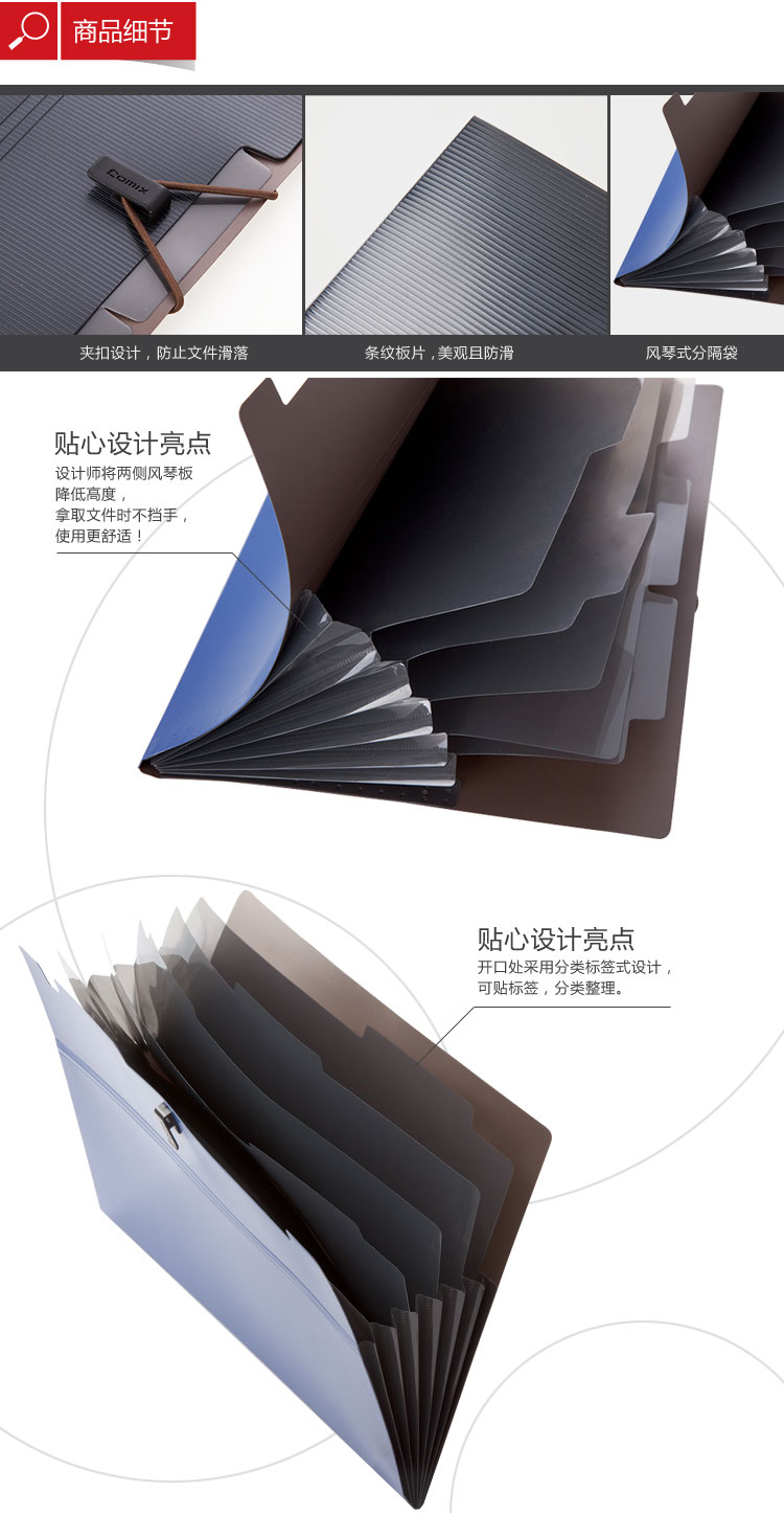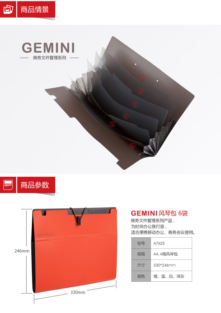 • 商品名稱:齊心(Comix) A7625 A4文件包 6格風(fēng)琴包 文件包 Germini系列 深灰色