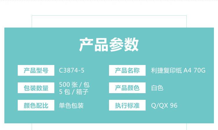 • 商品名稱:齊心(Comix) A4利捷雙面復(fù)印紙 70克打印紙 500張/包 5包/箱 C3874-5