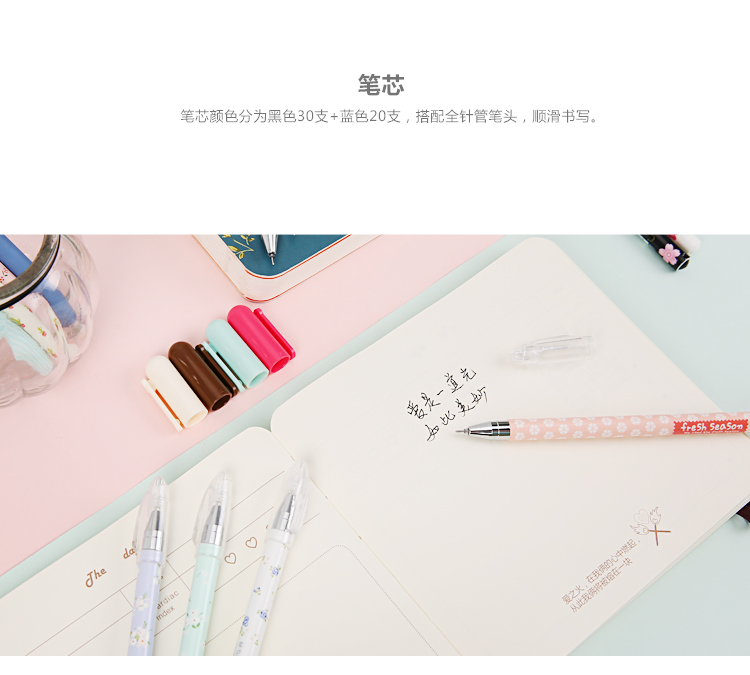 • 晨光(M&G)0.35mm+0.38mm全針管中性筆簽字筆水筆套裝(30支黑+20支藍(lán))HAGP0704