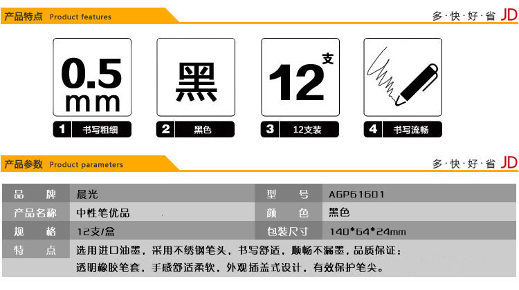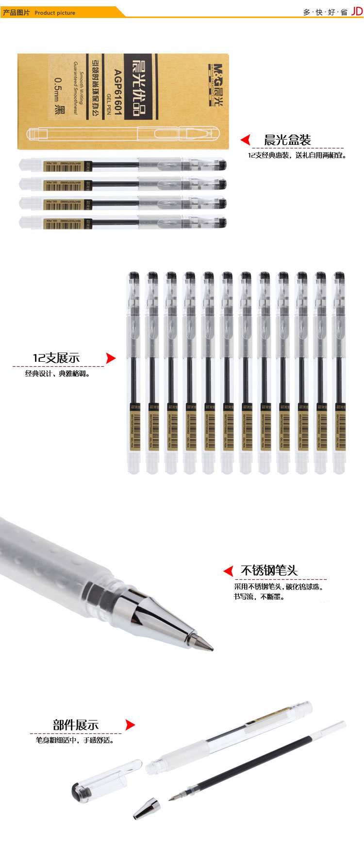 • 商品名稱:晨光(M&G)優(yōu)品系列0.5mm黑色子彈頭拔蓋中性筆簽字筆水筆 12支/盒AGP61601