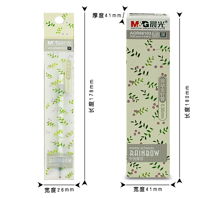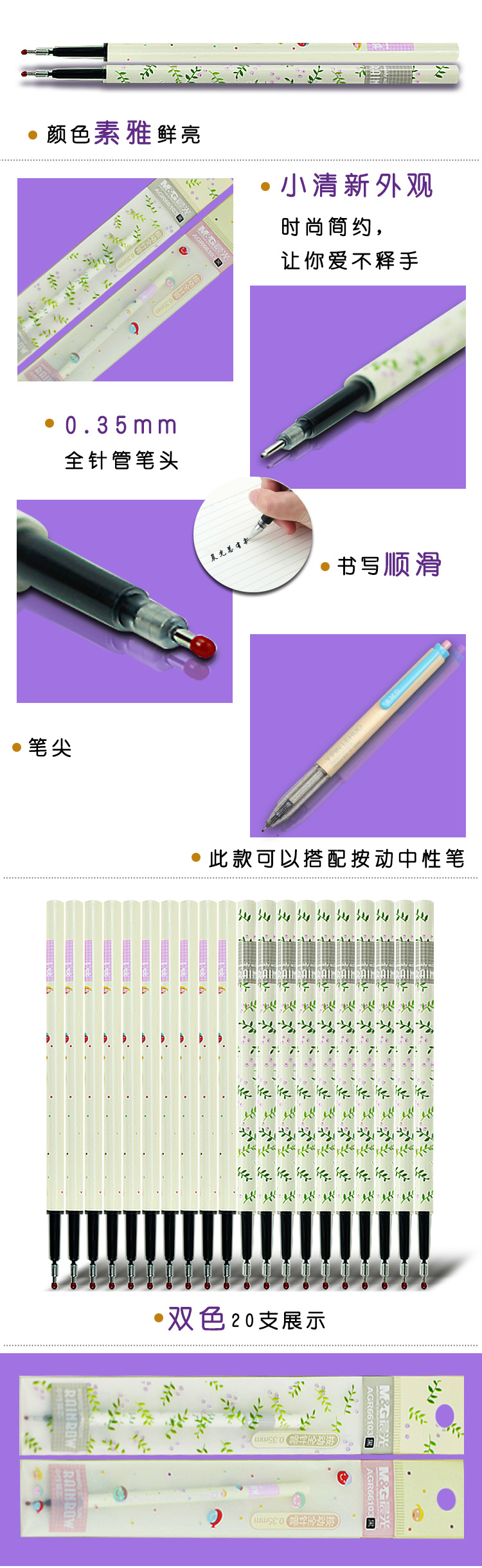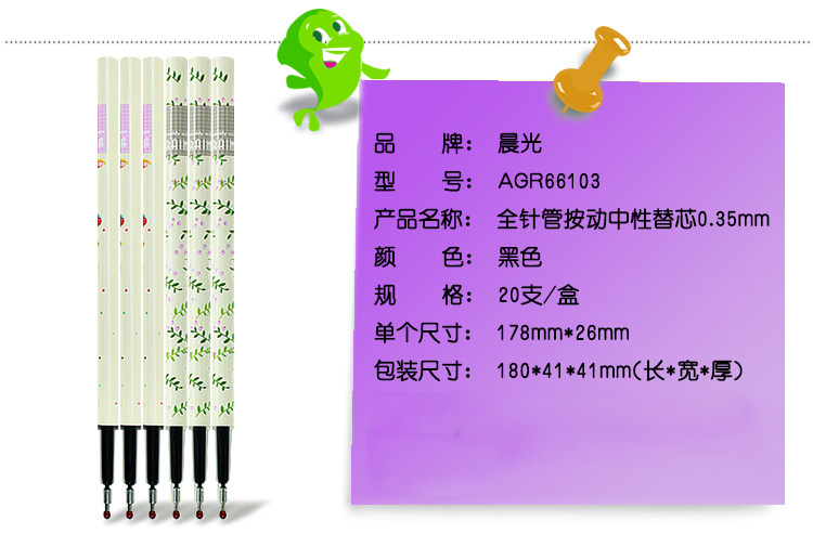 • 商品名稱:晨光(M&G)0.35mm黑色按動(dòng)全針管中性筆簽字筆水筆替芯筆芯 20支/盒AGR66103