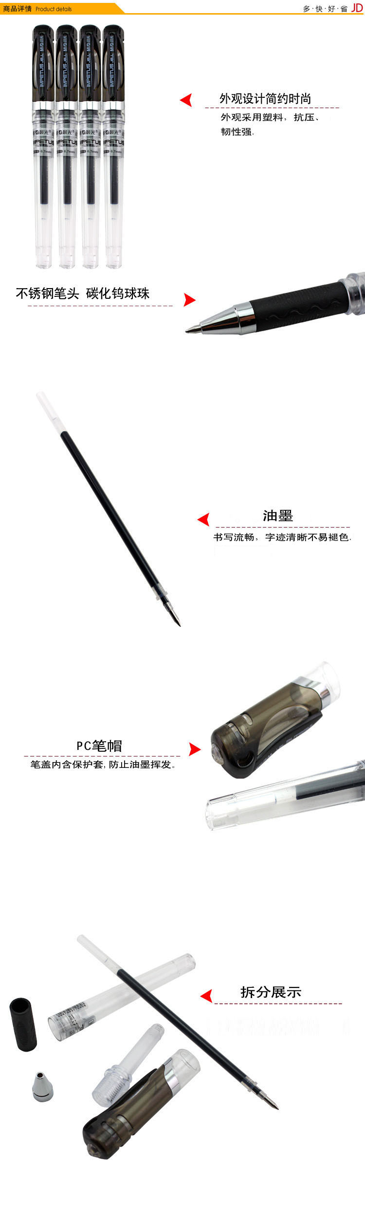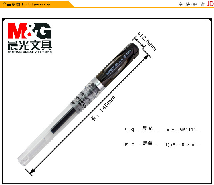 • 商品名稱:晨光(M&G)GP1111黑色0.7mm大容量中性筆簽字筆水筆 12支/盒