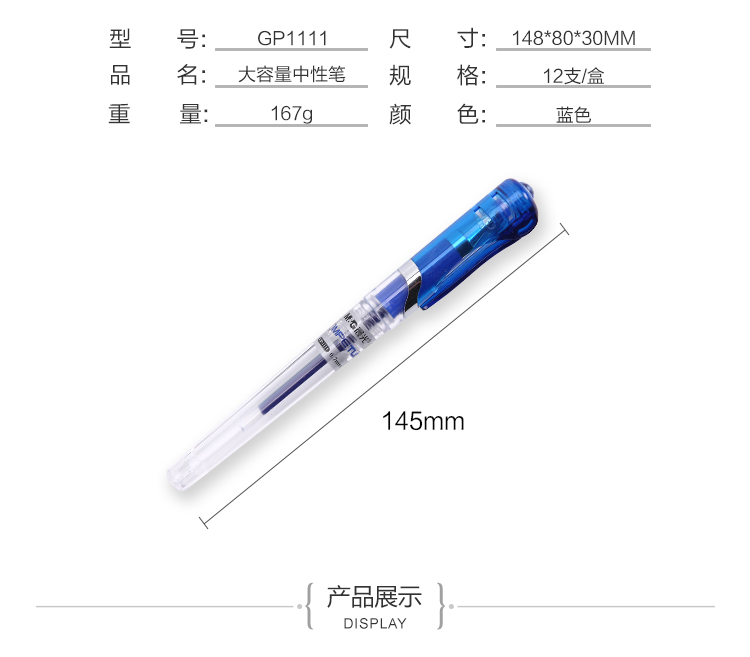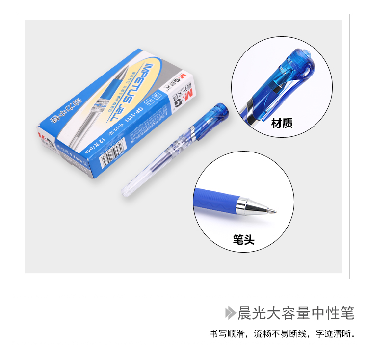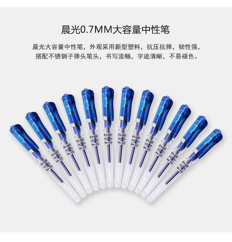 • 商品名稱:晨光(M&G)GP1111藍色0.7mm大容量中性筆簽字筆水筆 12支/盒