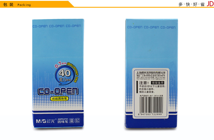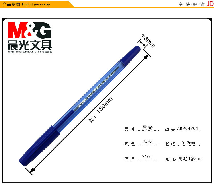 • 商品名稱:晨光(M&G)0.7mm藍色子彈頭拔蓋圓珠筆中油筆原子筆 40支/盒ABP64701
