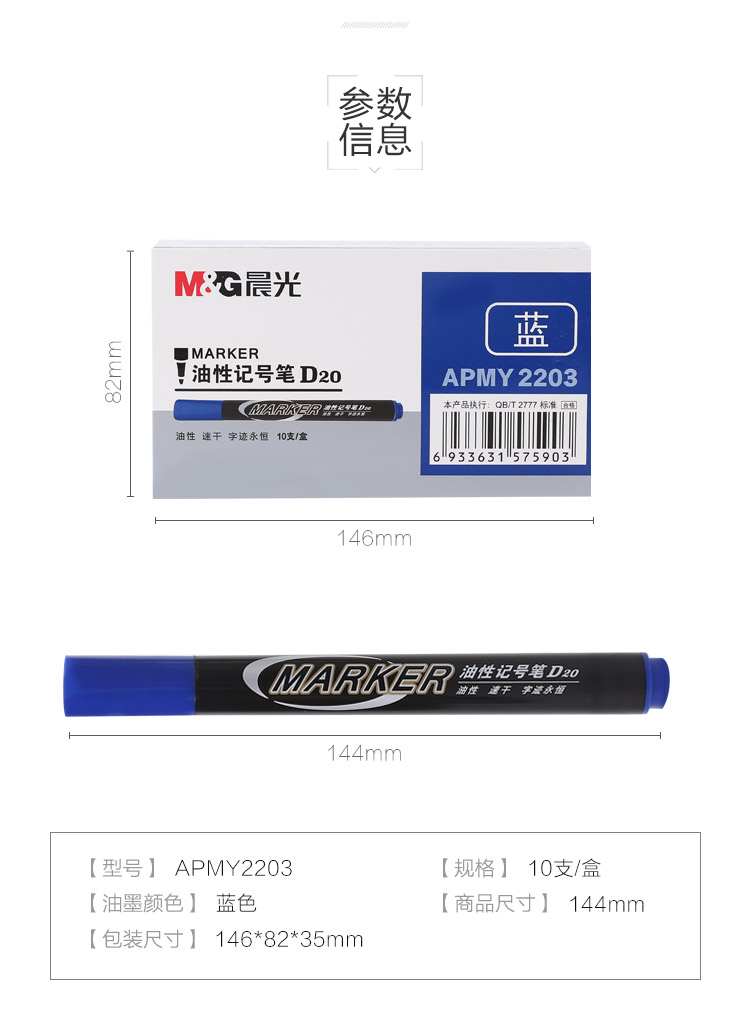 • 商品名稱:晨光(M&G)單頭藍(lán)色物流油性記號(hào)筆 10支/盒 APMY2203