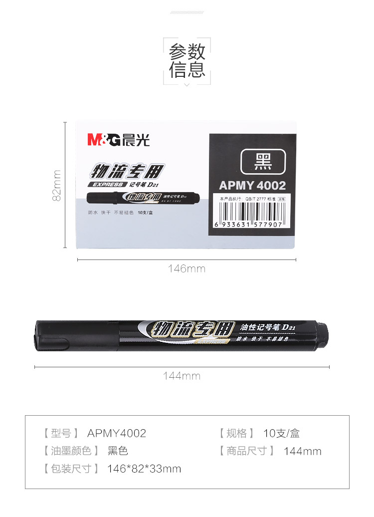 • 晨光(M&G)單頭黑色物流記號筆 10支/盒APMY4002