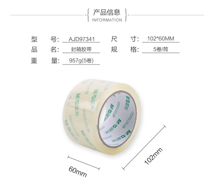 • 商品名稱:晨光(M&G)60mm*60y超透明封箱打包膠帶54.84m/卷 5卷裝AJD97341