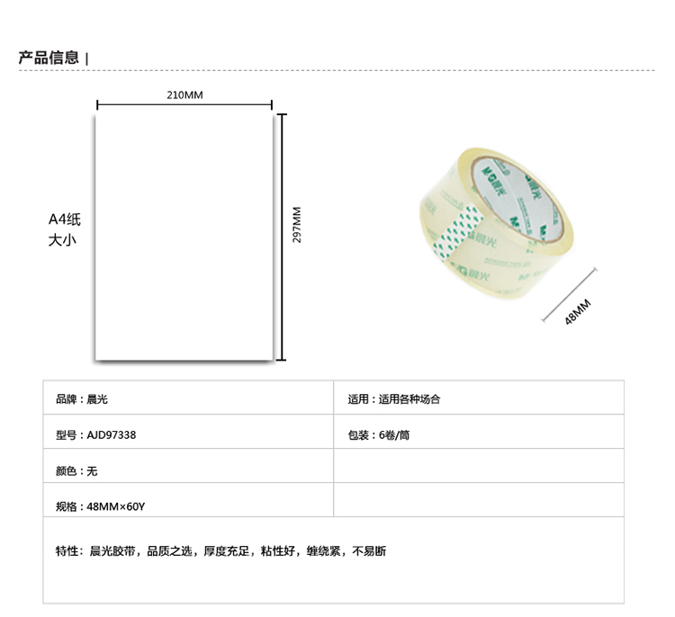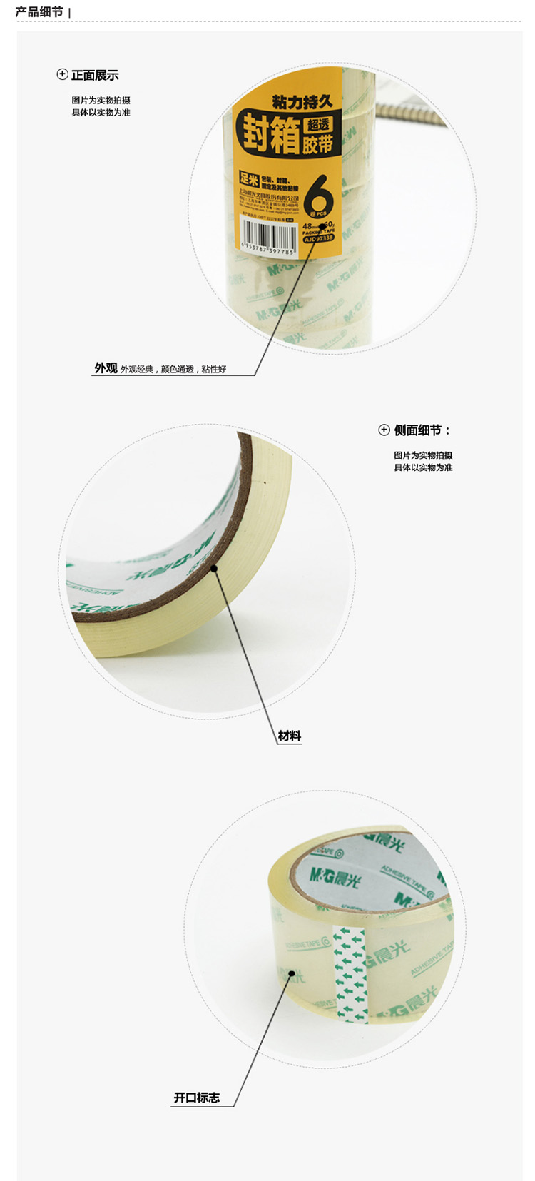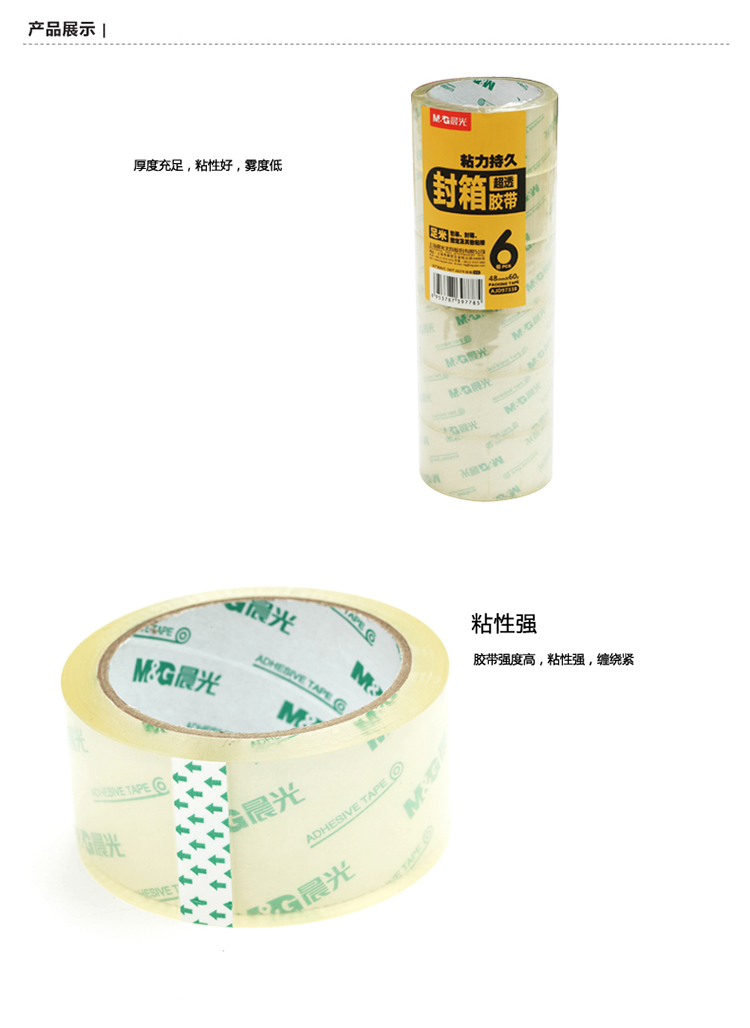 • 商品名稱(chēng):晨光(M&G)48mm*60y高透封箱打包膠帶 6卷裝AJD97338