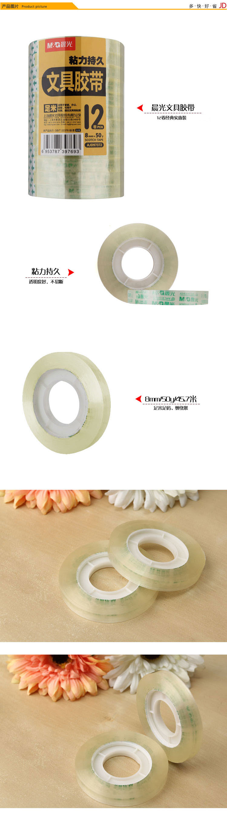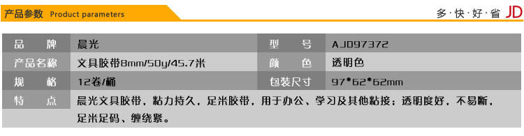 • 商品名稱:晨光(M&G)8mm*50y高透易撕便攜小膠帶45.7m/卷 12卷裝AJD97372