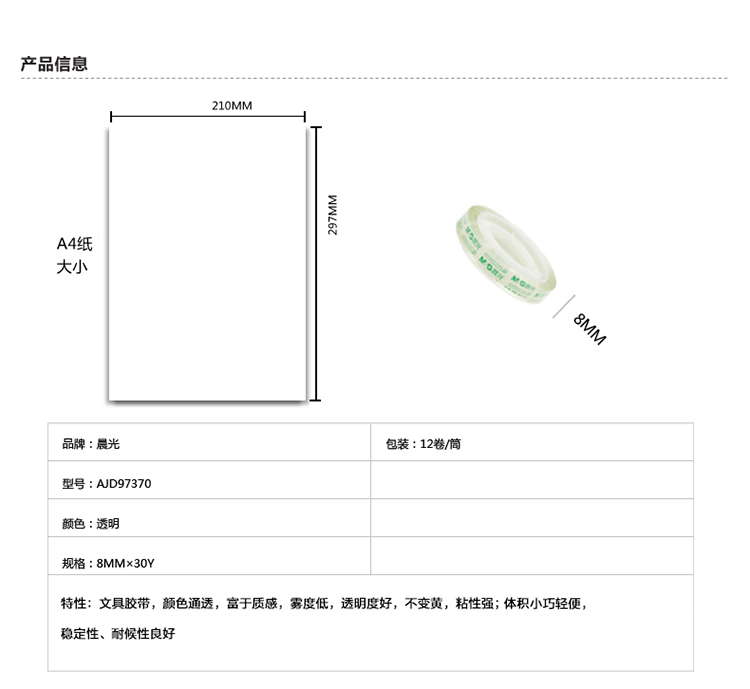 • 商品名稱:晨光(M&G)8mm*30y高透易撕便攜小膠帶 12卷裝AJD97370