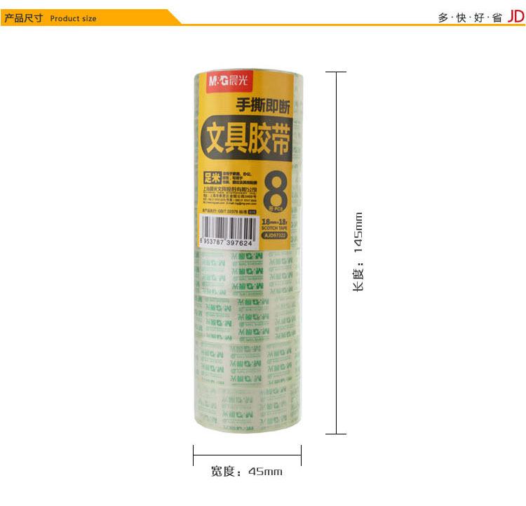 • 商品名稱:晨光(M&G)18mm*30y高透易撕小膠帶27.42米/卷 8卷裝AJD97323